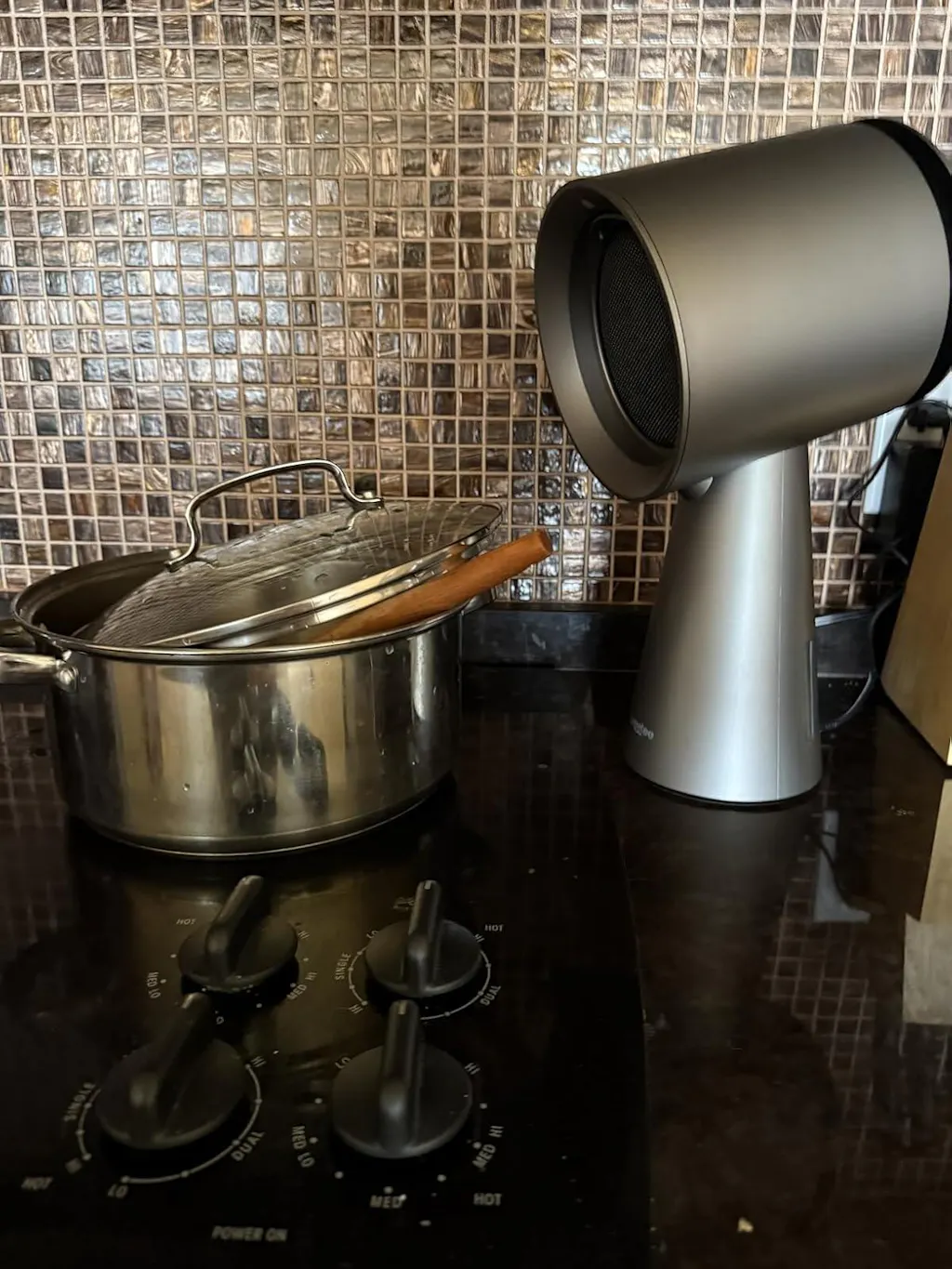 An excellent range hood for cooking. It has several modes, including a powerful mode that eliminates food odor completely. It works much better than a stationary range hood. It looks very modern.